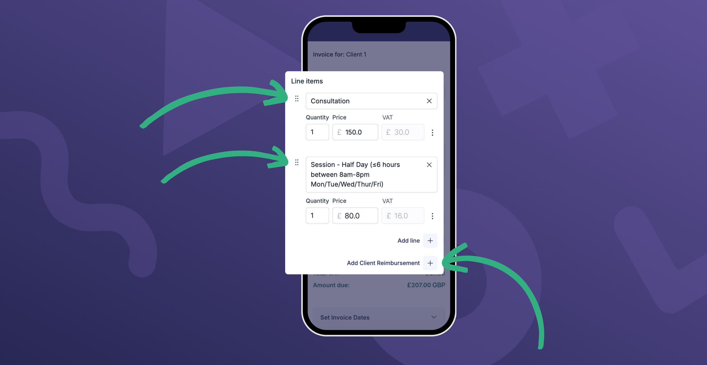 The price you list (excluding VAT) should be for a single product/service. Hnry automatically calculates the total based on the quantity.